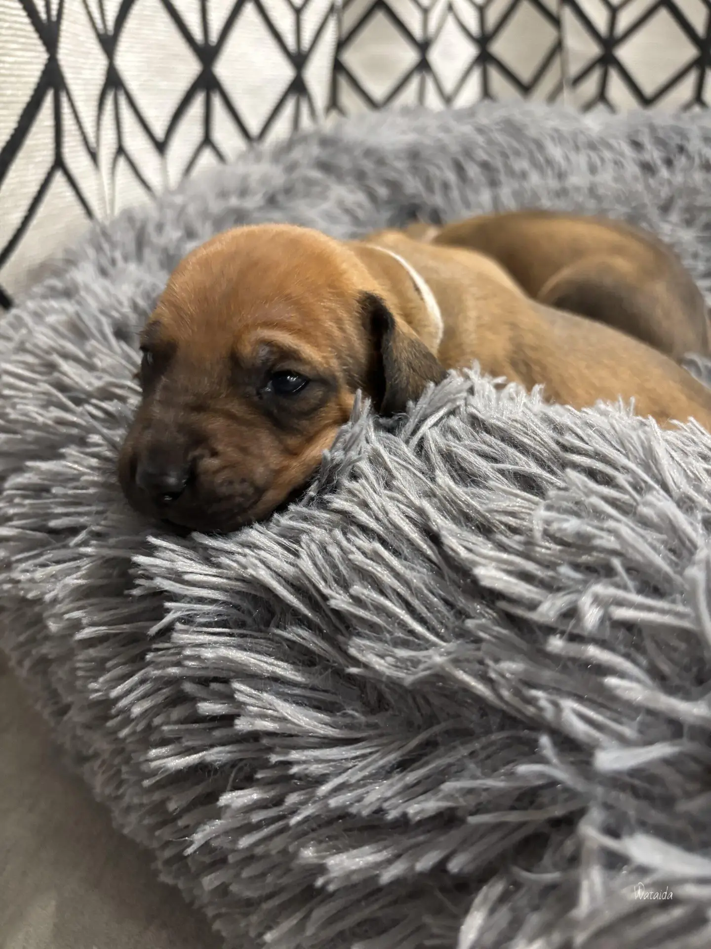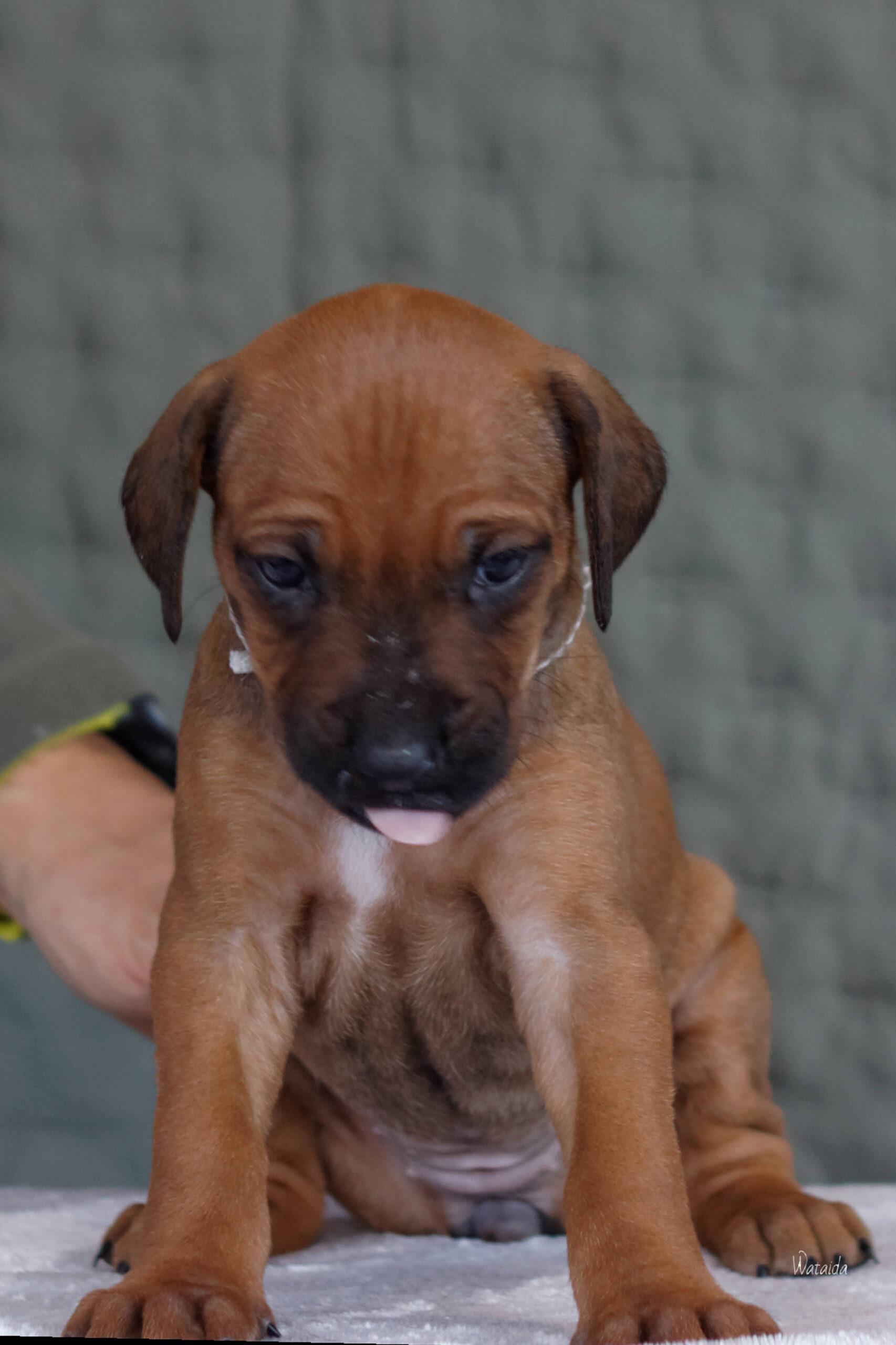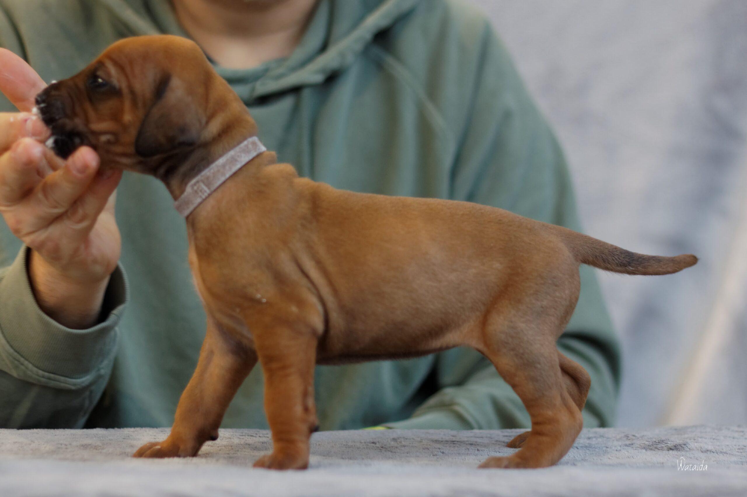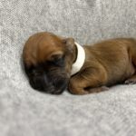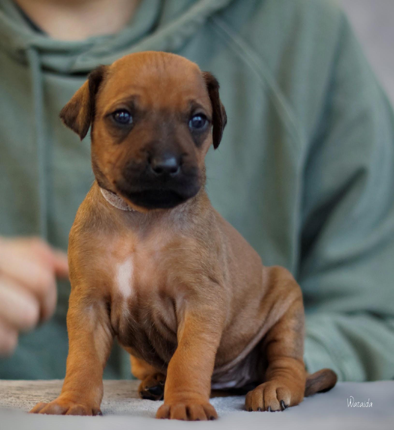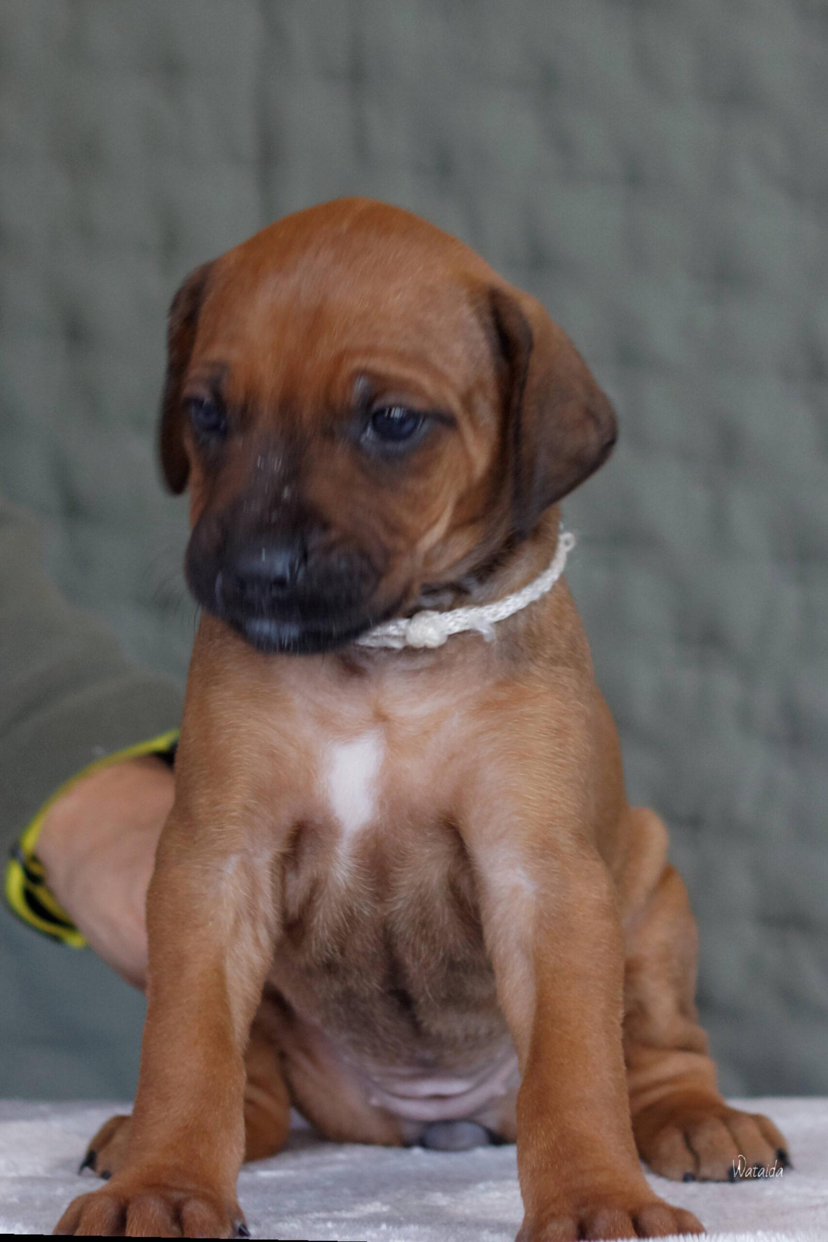 Jedyna dzieczywka z białym znaczeniem, od pierwszych chwil to nasza perełka. Żywa, energiczna, sprytna, szybko wszystko łapie w locie. Szybko je jakby się bała że ktoś jej zabierze. Radosna dziewczynka, bardzo przytulaśna. Uwielbia człowieka. Nasza druga suczka Perla sobie ją szczególnie upatrzyła. Bardzo się nią opiekowała przez pierwsze tygodnie. Urodziła się bez pręgi, nie jest suczką hodowlaną. Ta mała księżniczka dostała imię YUKI.
