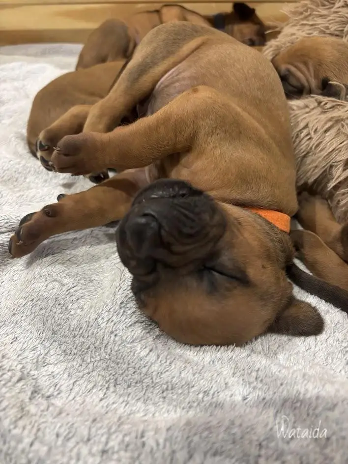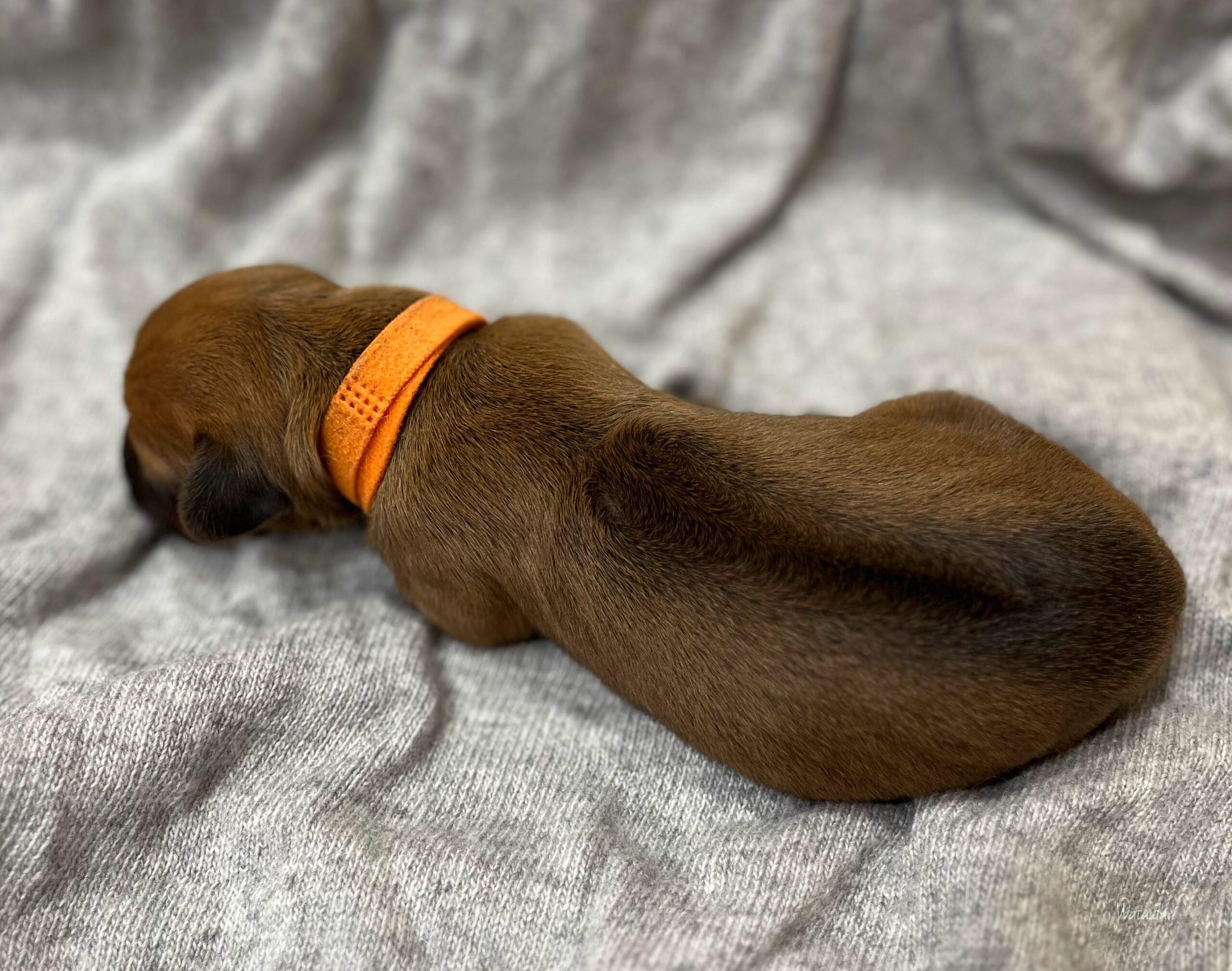 Pomarańczowy chłopczykŚliczny standardowy chłopczyk, szybki jak McLaren. Lubi zaczepianie szczególnie z turkusową i białą dziewczynką. Głośno komunikuje swoje potrzeby. Radosny maluch lubi podążać za człowiekiem i swoja mamą. Lubi sobie pojeść.